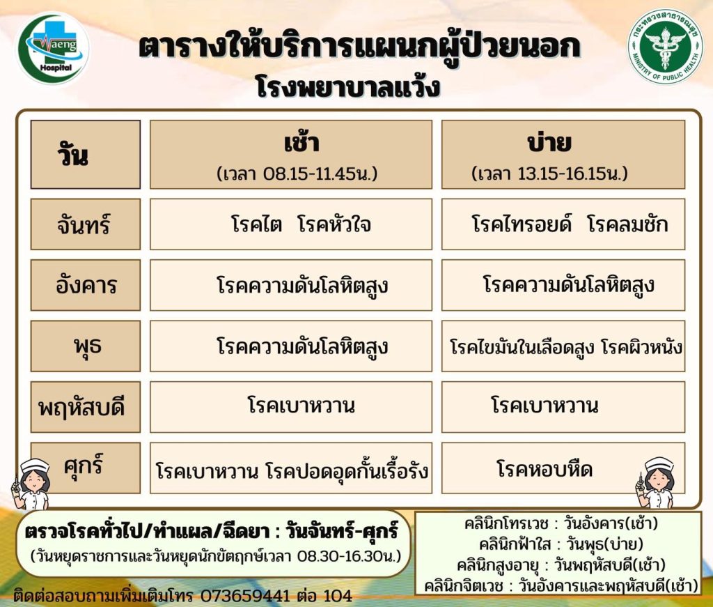 ตารางแพทย์ตรวจ OPD ประจำปี 2567