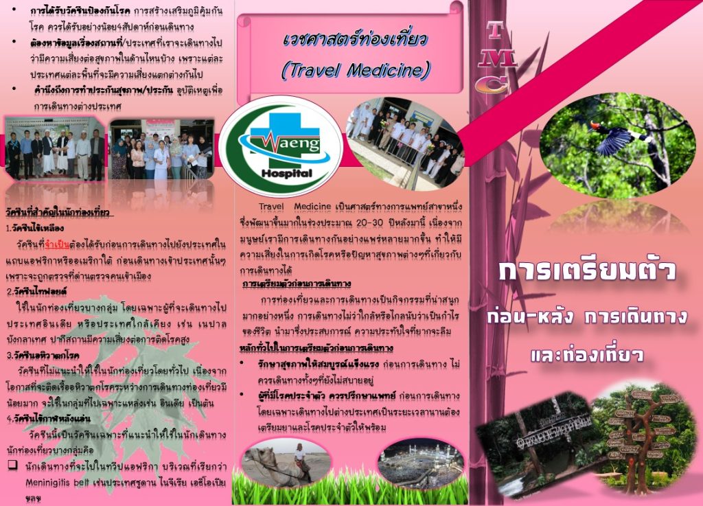 คลินิคเวชศาสตร์การเดินทางและท่องเที่ยว โรงพยาบาลเปิดให้บริการ คลินิกเวชศาสตร์การเดินทางและท่องเที่ยว ทุกวันจันทร์-วันศุกร์ เวลาเปิดบริการ 08.30-16.00 น. เว้นวันหยุดนักฤกษ์