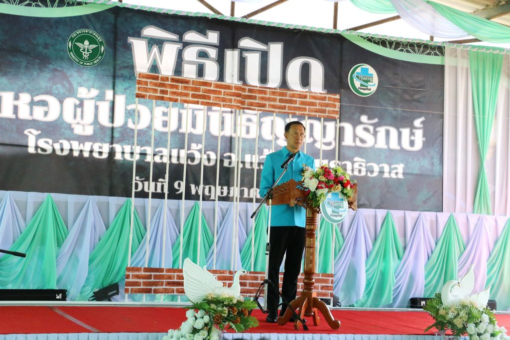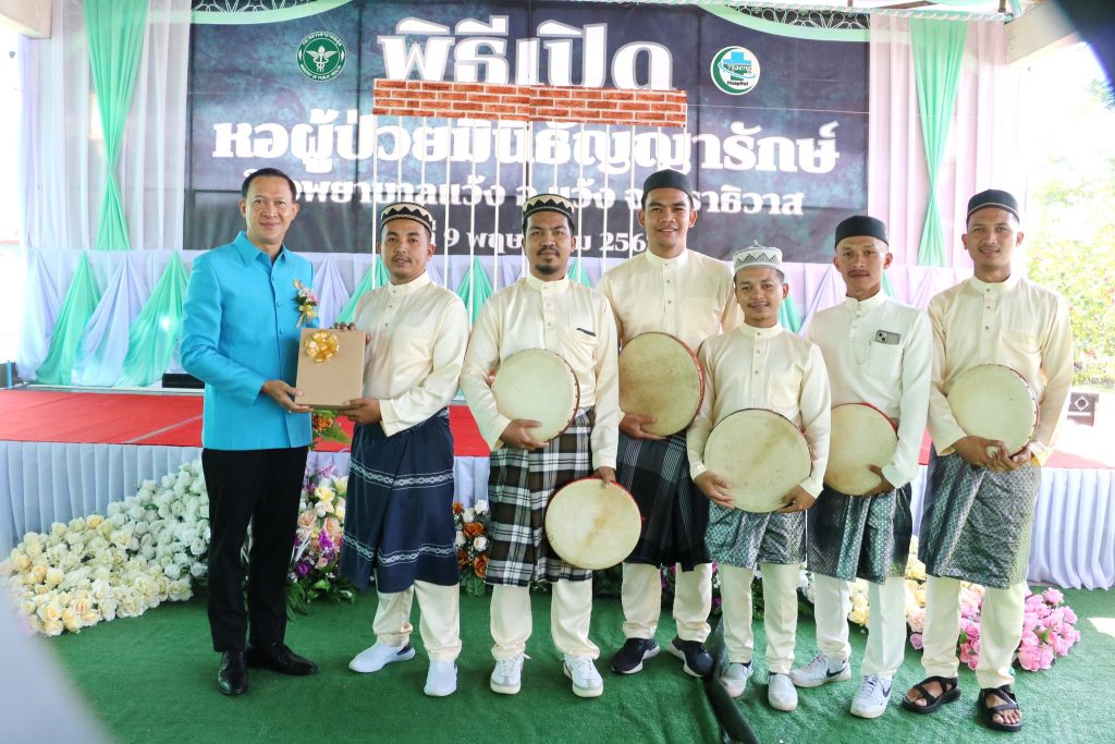 ภาพกิจกรรม รพ.แว้ง News! "พิธีเปิดหอมินิธัญญารักษ์" วันที่ 9 พฤษภาคม 2567 ณ ลานอเนกประสงค์ โรงพยาบาลแว้ง จังหวัดนราธิวาส ว่าที่ร้อยตรี ตระกูล โทธรรม ผู้ว่าราชการจังหวัดนราธิวาส เป็นประธานเปิดหอผู้ป่วยมินิธัญญษรักษ์โรงพยาบาลแว้ง โดยมีนายแพทย์สมบูรณ์ บุญญกิตติชัยพันธ์ นายแพทย์สาธารณสุขจังหวัดนราธิวาส กล่าวรายงาน ซึ่งมี แพทย์หญิงนริศรา งามขจรวิวัฒน์ ผอ.โรงพยาบาลธัญญารักษ์ปัตตานี นายแพทย์วันเตาเฟ็ก แวดือราแม ผอ.โรงพยาบาลแว้ง สาธารณสุขอำเภอ บุคลากรทางการแพทย์และสาธารณสุข อสม. และหัวหน้าส่วนราชการ เข้าร่วมในกิจกรรมครั้งนี้มีวัตถุประสงค์เพื่อขับเคลื่อนนโยบายประเด็นสุขภาพจิตและยาเสพติดของกระทรวงสาธารณสุข ในการจัดตั้งมินิธัญญารักษ์ครอบคลุมทุกจังหวัด เพื่อส่งเสริมและสนับสนุนให้ผู้ป่วยยาเสพติดได้รับการบำบัดและฟื้นฟูสมรรถภาพได้อย่างเหมาะสม เพื่อให้มีคุณภาพชีวิตที่ดีและสามารถกลับไปใช้ชีวิตในสังคมได้อย่างปลอดภัย